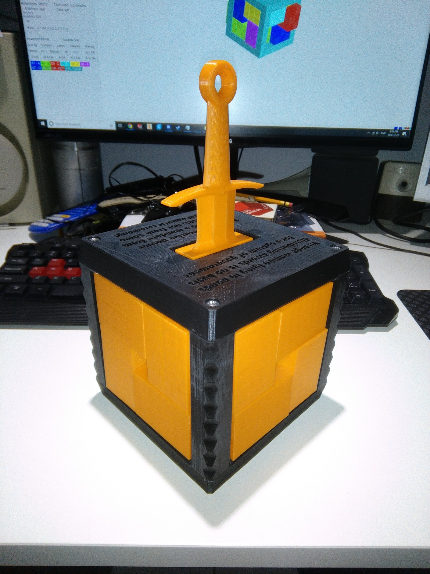 This is a puzzle that I modeled in Inventor and printed on my printer. The original puzzle is called "Excalibur" and was designed by Stephan Baumegger.
