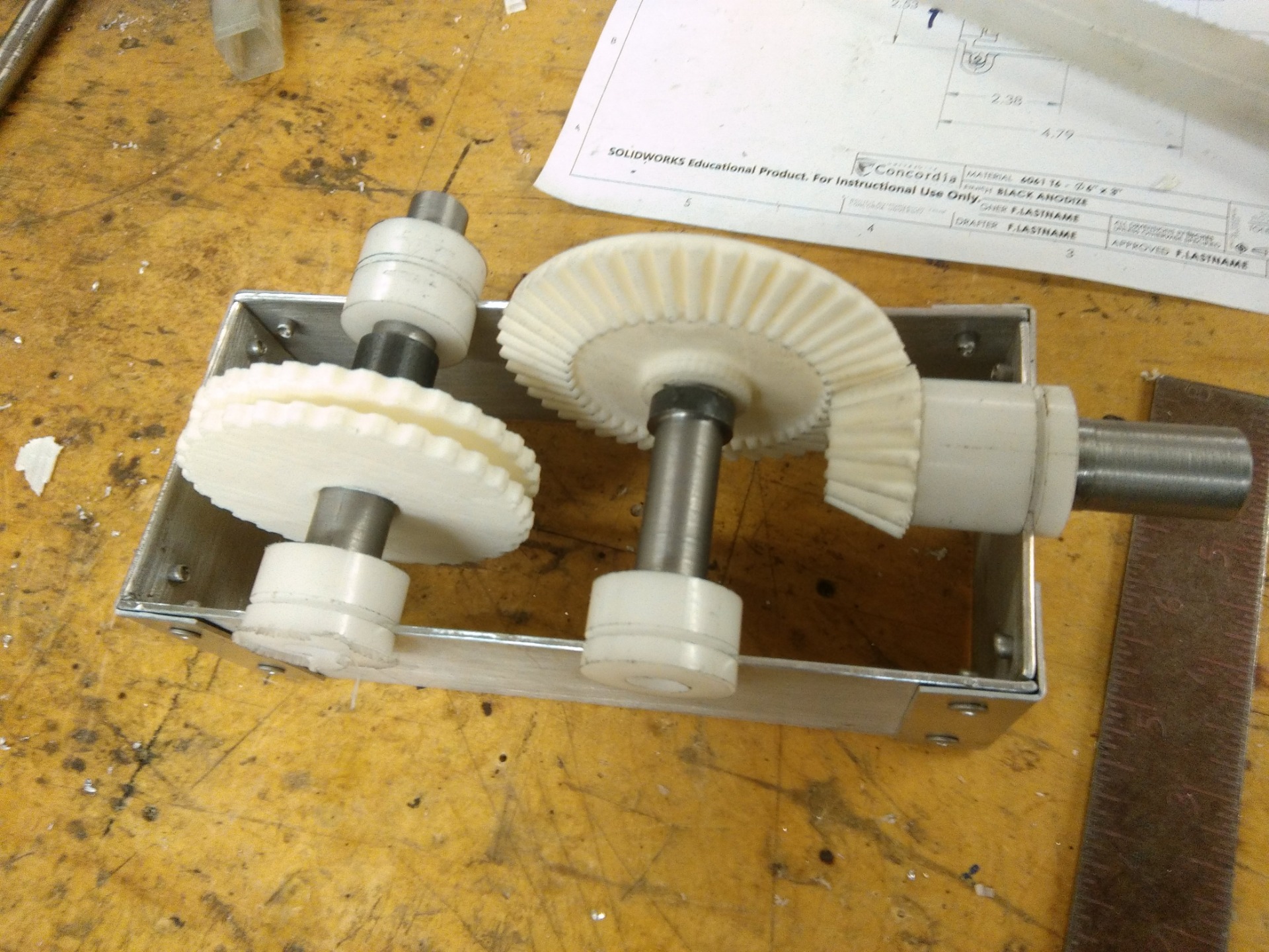 Mini-cap is a one semester long project for Mechanical Engineering students. Our design brief was for a transmission capable of transmitting 50 HP, decreasing speed 6:1 and changing the axis of rotation 90°. CAD was done in Solidworks and so was the stress analysis.