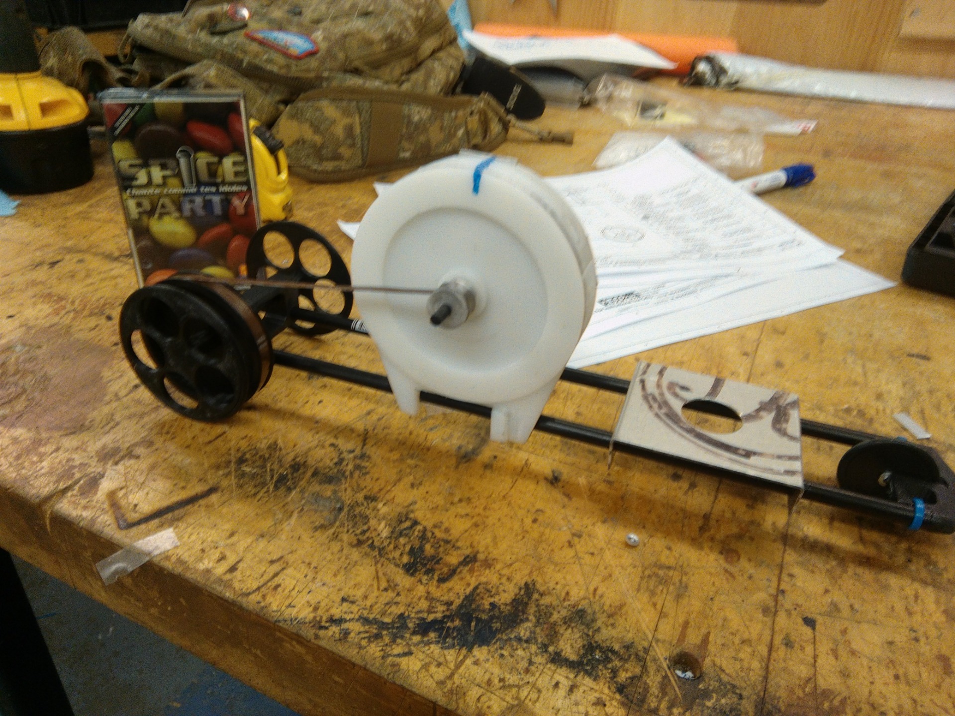 Cassette tape was used to transmit power from the turbine (white part) to the rear wheels.